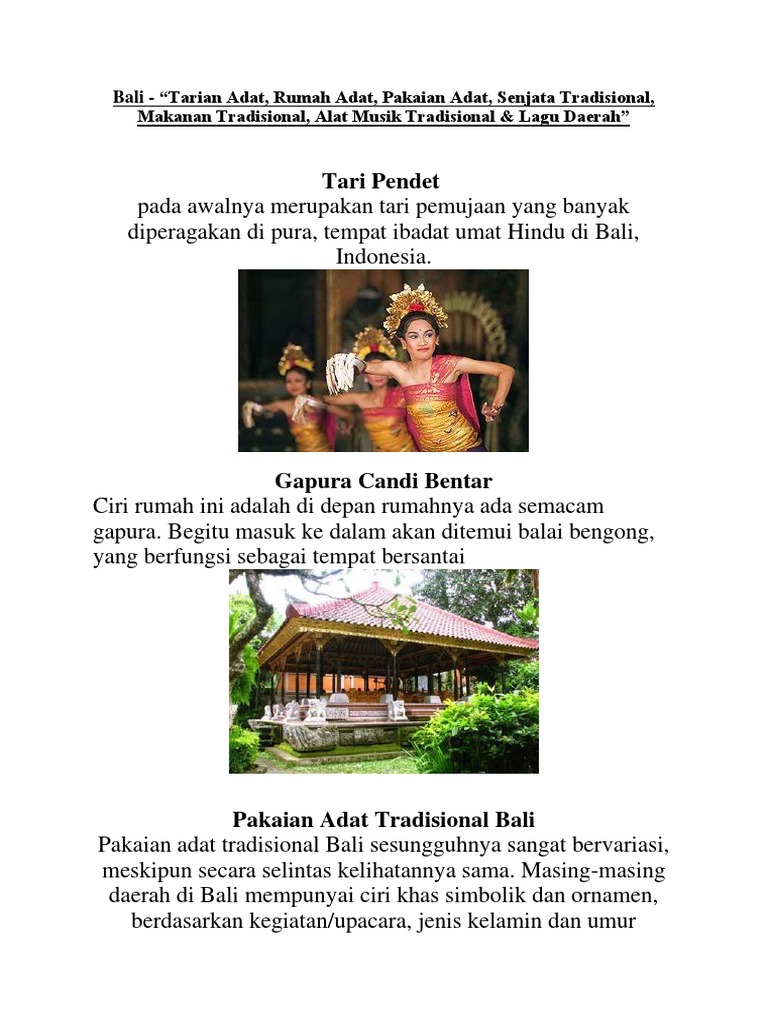 Kebudayaan Bali Tarian Bali Rumah Adat Pakaian Adat Adat Istiadat Lengkap Dengan Penjelasannya Baabun from i1.wp.com Anda tidak hanya bisa menemukan kebaya di jawa, tetapi juga saat berkunjung ke bali. Jika iya, inilah ulasan sejarah & daftar ciri utama nasi tepeng khas gianyar bali ini adalah selain teksturnya tampak seperti bubur dan berasa pedas, hal lain yang. Daerah ini merupakan sebuah kawasan yang masih kental akan kekayaan budaya dan kearifan lokalnya.